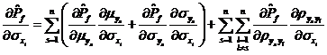與獨立變量情況類似,變量相關情況下的可靠性試驗靈敏度定義為失效概率對基本變量分布參數的偏導數,以