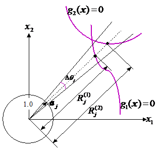 個失效模式對應(yīng)的失效邊界交點處的特征半徑。如圖5.2所示。