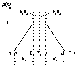 本文主要討論b、c兩點重合的情況,即圖7.2(b)所示的情況,此時可選取模糊變量隸屬函數的兩參數為:中心值