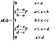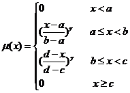當b、c兩點重合時,隸屬函數蛻變為下式,其形狀如圖7.2(b)所示。
