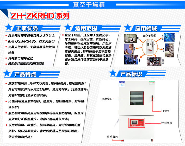 真空烤箱廣泛應(yīng)用于生物化學(xué),化工制藥、醫(yī)療衛(wèi)生、農(nóng)業(yè)科研、環(huán)境保護(hù)等研究應(yīng)用領(lǐng)域,作粉末干燥、烘培以及各類(lèi)玻璃容器的消毒和殺菌用,特別適用于對(duì)干燥熱敏性、易分解、易氧化物質(zhì)和復(fù)雜成分物品進(jìn)行快速有效的干燥處理。